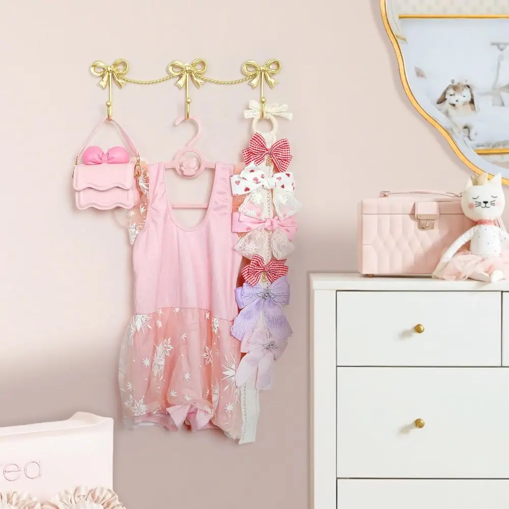 Neue Wandmontierte Schleifenhaken aus Eisen zur Raumdekoration, Metall-Schleifenhaken zum Aufhängen, Drei-Schleifen-Haken für Mädchenzimmer