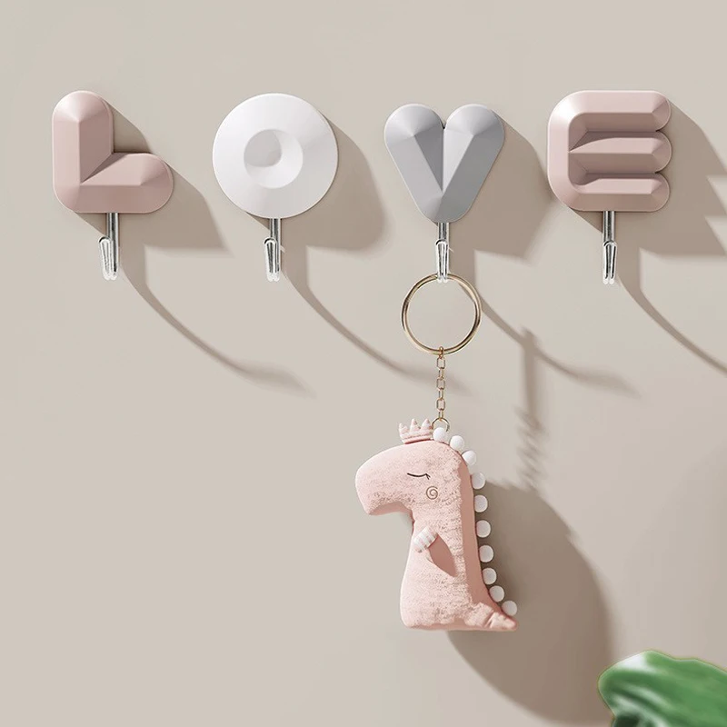 LOVE Kunststoff-Buchstabenhaken, kreativ, ohne Schlag, Wohnheim, Schlafzimmer, Badezimmer, Küche, Tür, Hinterwand, selbstklebender Haken