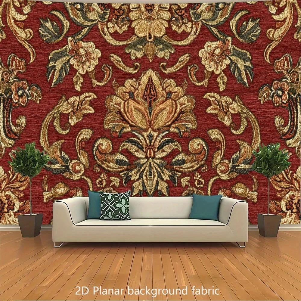 Flacher, bedruckter 2D-Hintergrundstoff im mittelalterlichen Wandteppich-Stil – Blumenmuster der Old-World Grandeur in Burgunderrot und Gold