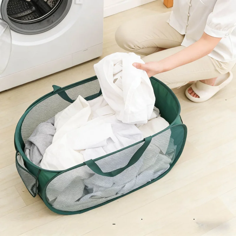 Pop-Up-Wäschekorb aus Mesh, atmungsaktiv, faltbar, tragbar, platzsparend, für Studentenwohnheime
