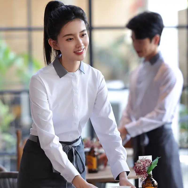 Männer Frauen Langarmhemden Arbeitskleidung für Catering-Server Western Restaurants Kuchen Backen Milch Tee Geschäfte Top Print Logo