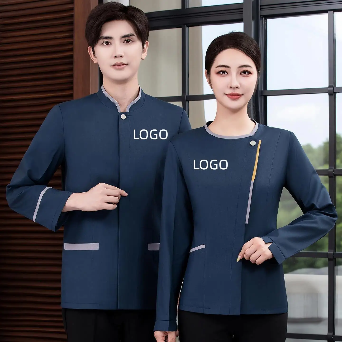 Hotelkellner-Arbeitsuniform, langärmlig, für Damen, im chinesischen Stil, für Restaurants, Hot-Pot-Restaurants, Arbeitskleidung für den Empfangsbereich, atmungsaktiv