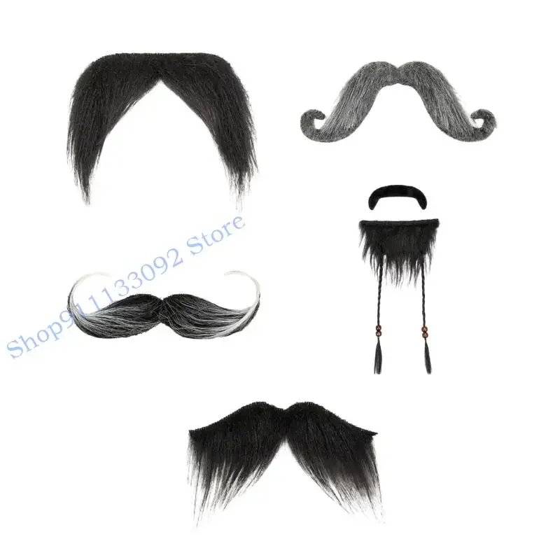 4 Sets alter Mann gefälschte Augenbrauen und Schnurrbart Requisiten selbstklebend realistische Kostümparty Cosplay Halloween gefälschter Bart Bart für Männer