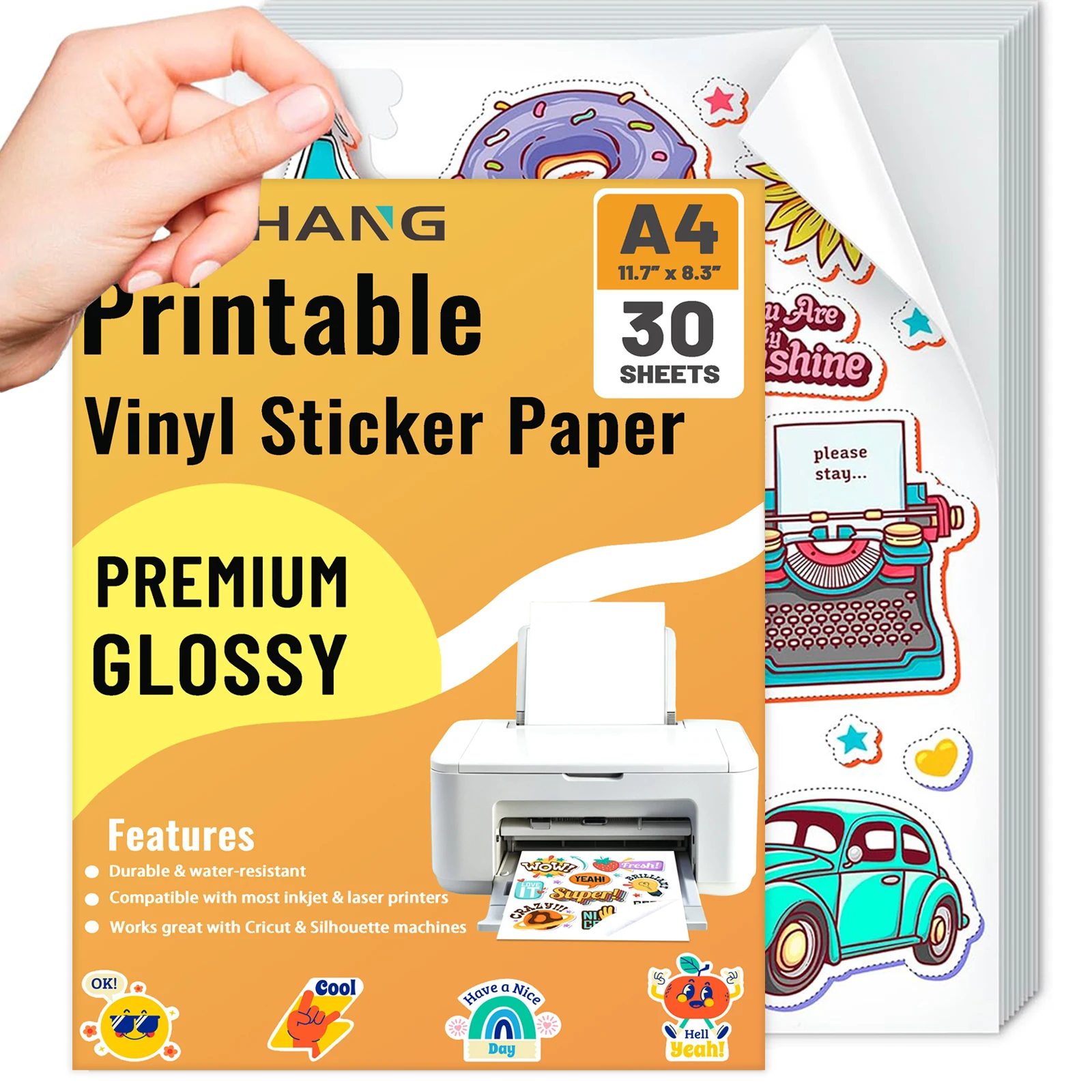 A4-Format 30 Blatt Bedruckbares Vinyl-Aufkleberpapier für Tintenstrahldrucker Glänzendes Weißes Wasserfestes Abziehbild-Papier Selbstklebende Blätter