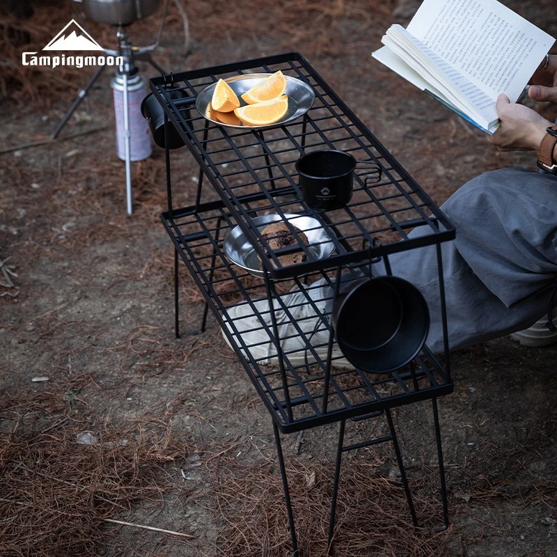 CAMPINGMOON T-225A Camping Edelstahl Mesh Tisch Berg Picknick Kombination Lagerung Rack Tragbare Camping Klapptisch
