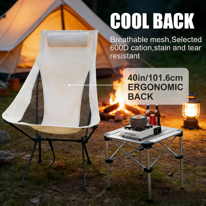 Hochlehniger Tragbarer Kompakter Campingstuhl mit Verbreiterter Sitzfläche und Verstellbarem Kopfstütze, Leichtgewichtig für Strand, Camping, Festivals, Wandern und Outdoor-Aktivitäten
