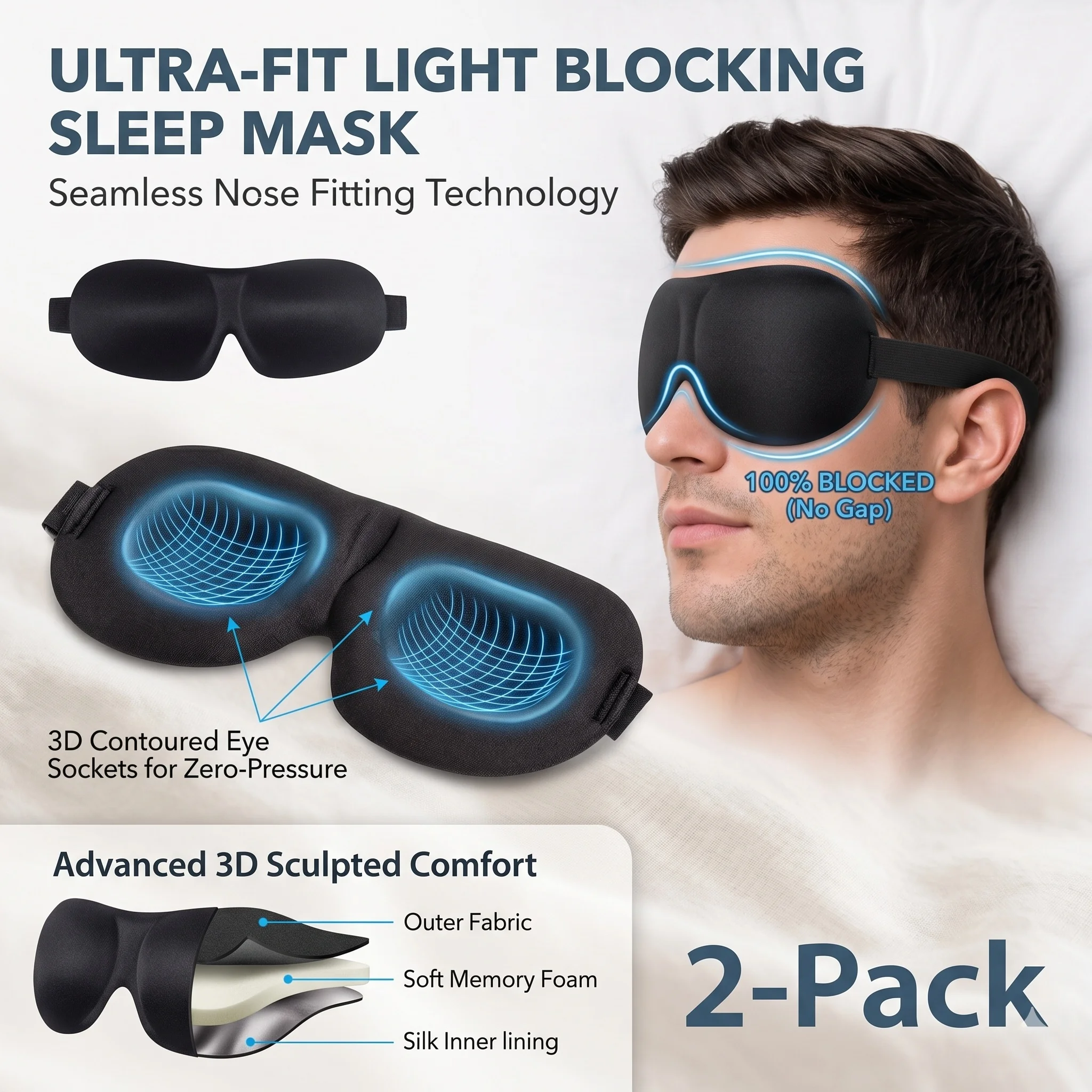 3D-Kontur-Schlaf-Augenmaske, geeignet für Seitenschläfer – 100 % Verdunkelung, weich und stressfrei – geeignet für Reisen, Nickerchen, Yoga