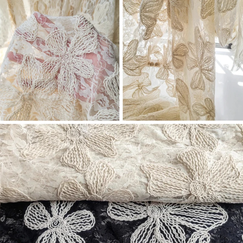 Baumwollfaden-Spitze Jacquard Dreidimensionale Stickerei Netzstoff Retro-Kleid Atmungsaktiver Dekorativer Kleidungs-Designerstoff