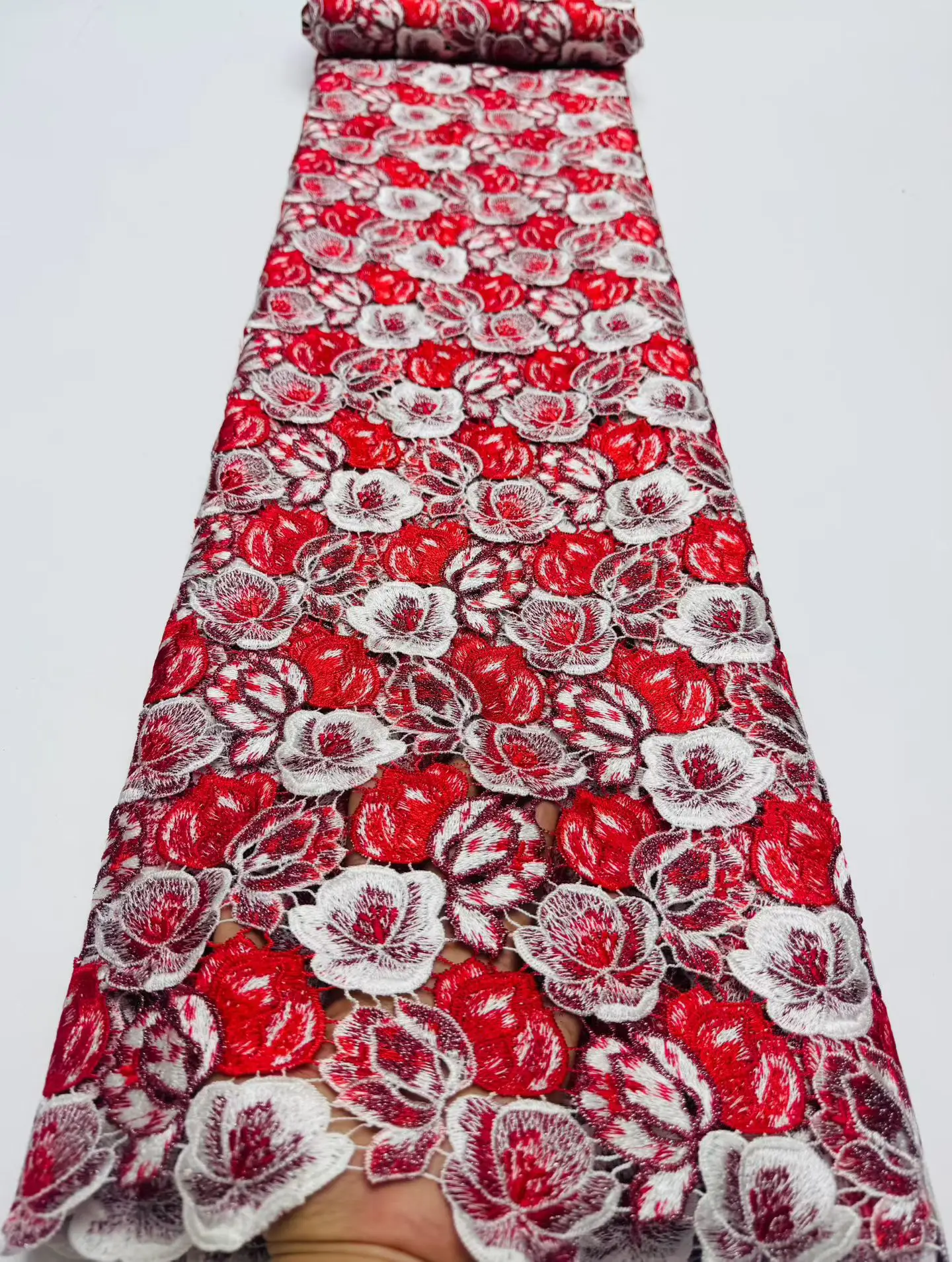Afrikanischer Schnur-Guipure-Spitzenstoff 2026, französischer Asoebi Chantilly, wasserlöslicher roter Spitzenstoff, hohe Qualität für Partykleid M130-1