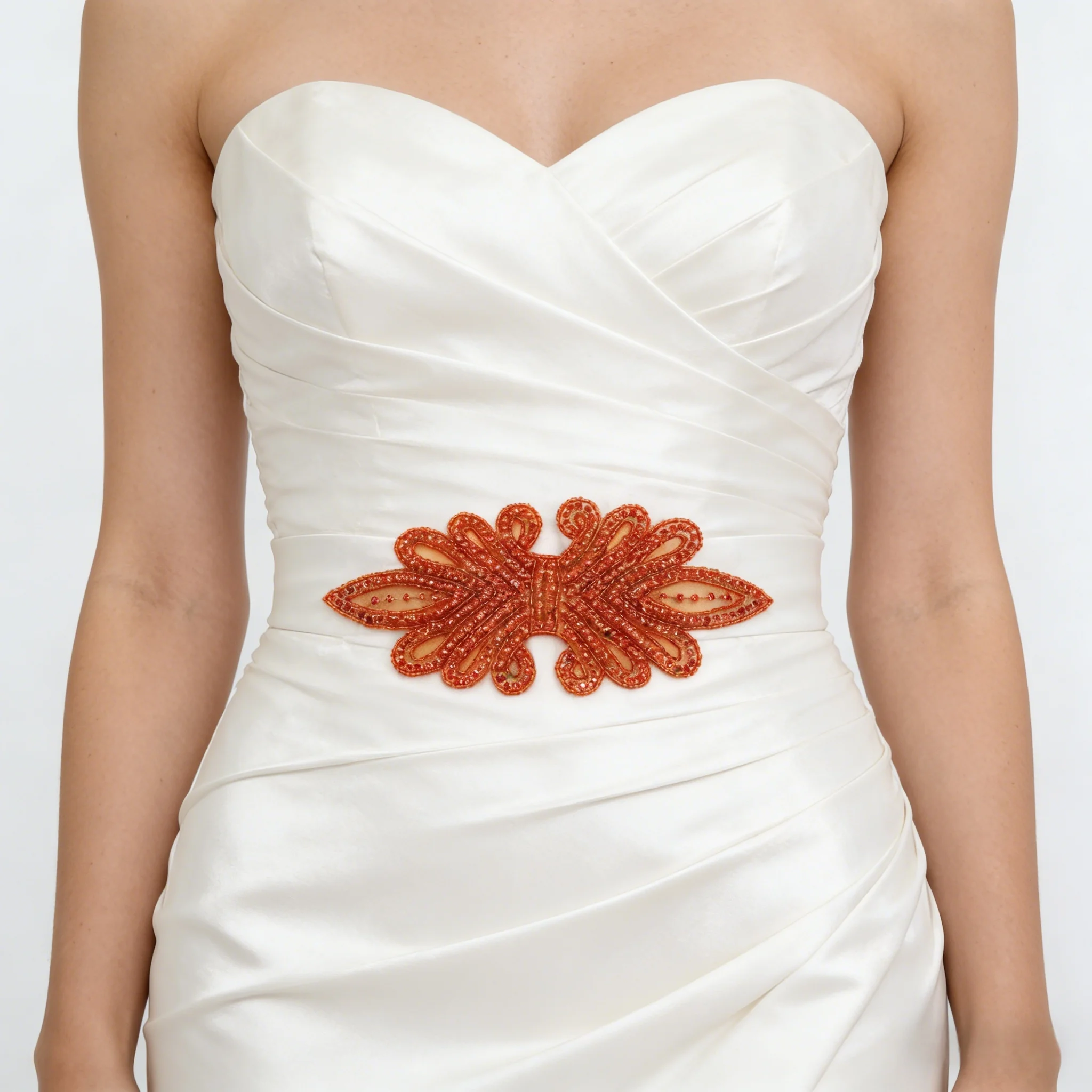 Orange-Goldene Hochwertige Perlen-Strass-Applikation als Edles Dekorationszubehör für Hochzeitskleider, Abendkleider und Bühnenkostüme