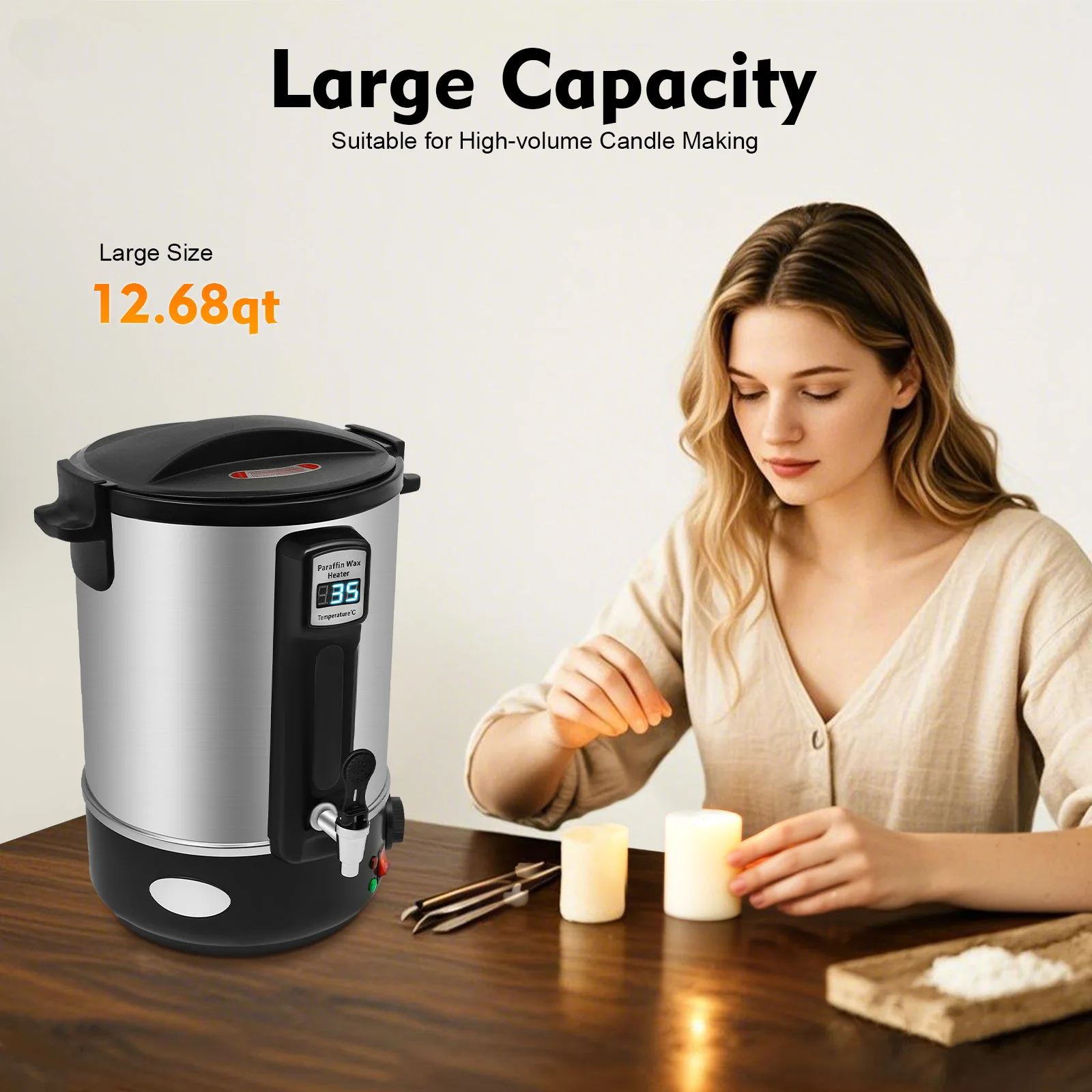 12 l elektrischer Wachsschmelzer für die Kerzenherstellung, Wachsschmelztopf aus Edelstahl, LED-Digitalanzeige, temperaturverstellbar 86 ℉ -212 ℉