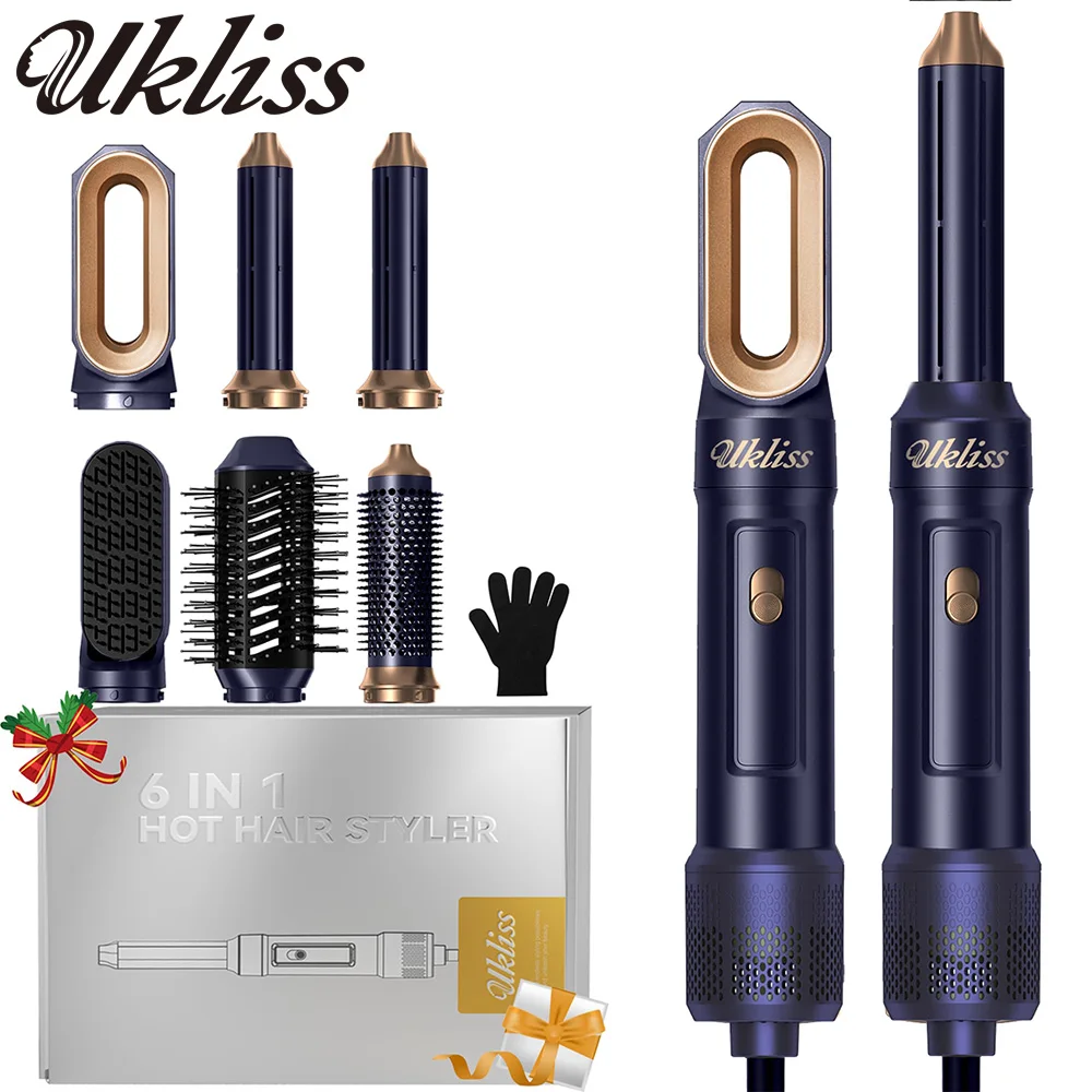 UKLISS 6-in-1-Haartrockner Multistyler, Heißluftbürste zum Locken, Glätten und Föhnen