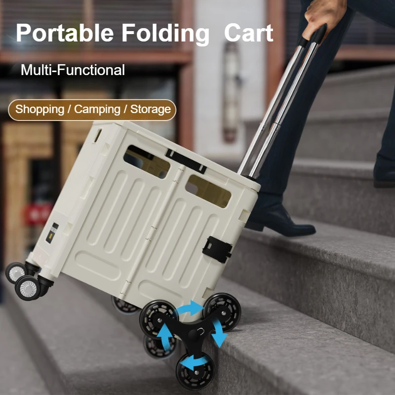 5S Schnell zusammenklappbarer Einkaufswagen, großes Fassungsvermögen, handgezogener Wagen, Treppensteigen, Gemüsebahn, leichter Reise-Picknick-Handwagen