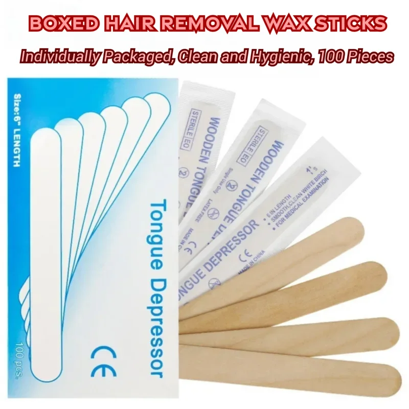 100 Stück Einweg-Zungenspatel aus Holz für den Körper, Haarentfernungsstab, Zungenspatel