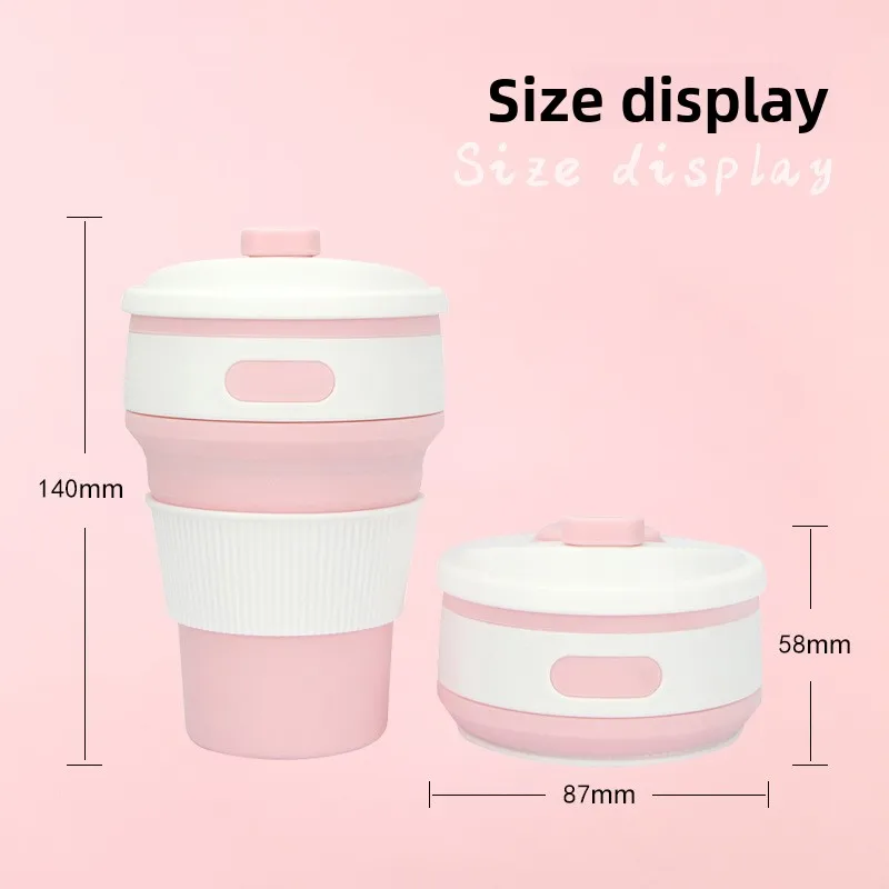 350 ml faltbarer Becher aus lebensmittelechtem Silikon, tragbarer Reisebecher mit Deckel, auslaufsicher, zusammenklappbar, wiederverwendbar für heiße und kalte Getränke im Freien