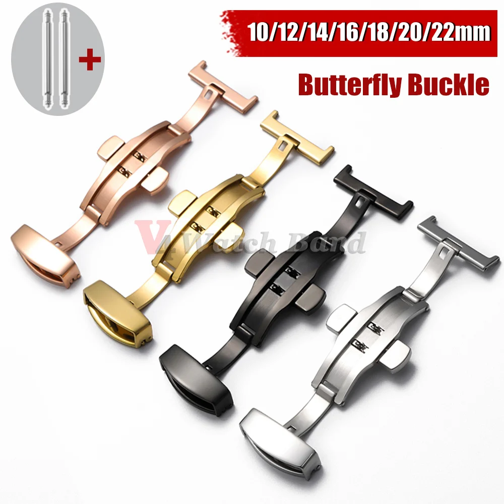 Edelstahl Universal Schmetterlingsschnalle Zubehör 10/12/14/16/18/20/22 mm Metalle Doppeldruckknopffalte für Armbandverschluss