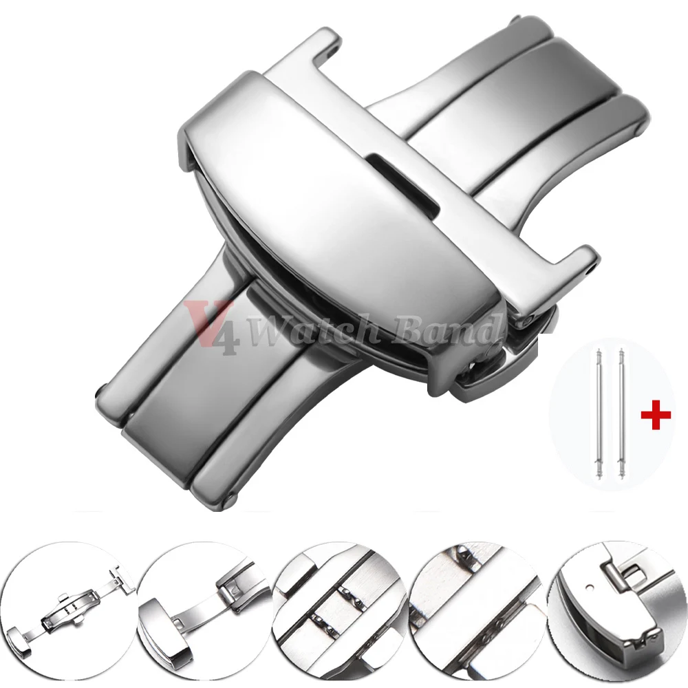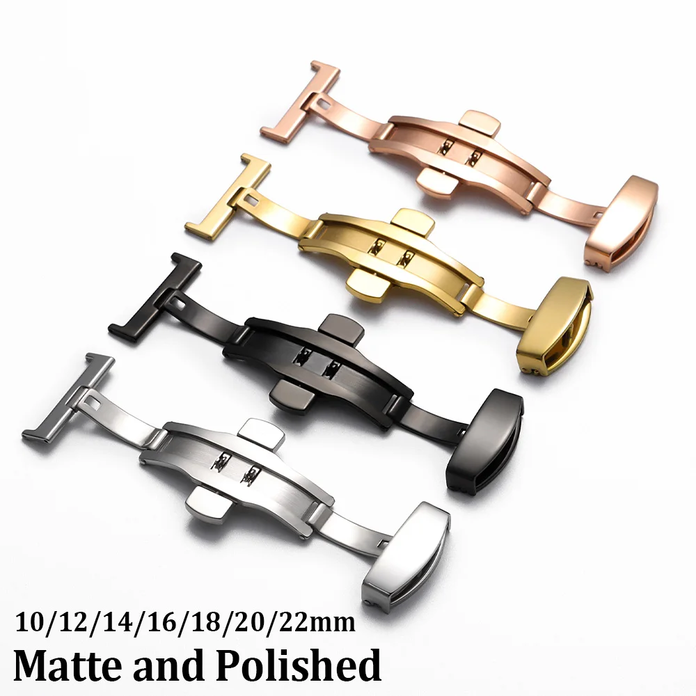 Polierte, matte Doppelknopf-Uhrenarmband-Schnallen aus Edelstahl, Butterfly-Verschluss, 14/16/18/20/22mm Armband-Verschluss-Zubehör