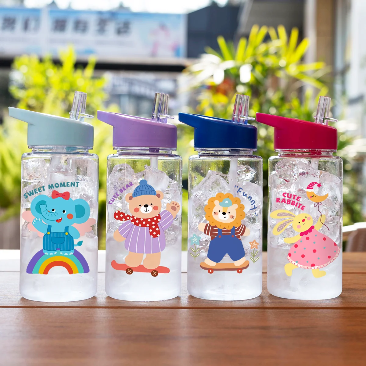 1 Stück 500ml (17 fl oz) Trinkbecher mit Cartoon-Tiermotiv und Strohhalm, Sommer-Wasserflasche, BPA-frei, tragbarer Sport-Outdoor-Becher, perfekt für unterwegs