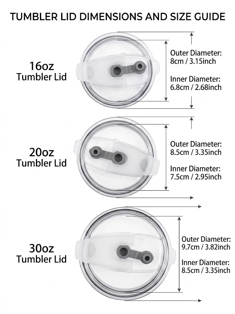1 x 20oz Schiebedeckel, geeignet für Becher mit einem Innendurchmesser von 8,1 cm, 1 x 30oz Standard-Schiebedeckel, geeignet für Becher mit einem Innendurchmesser von 9,5 cm