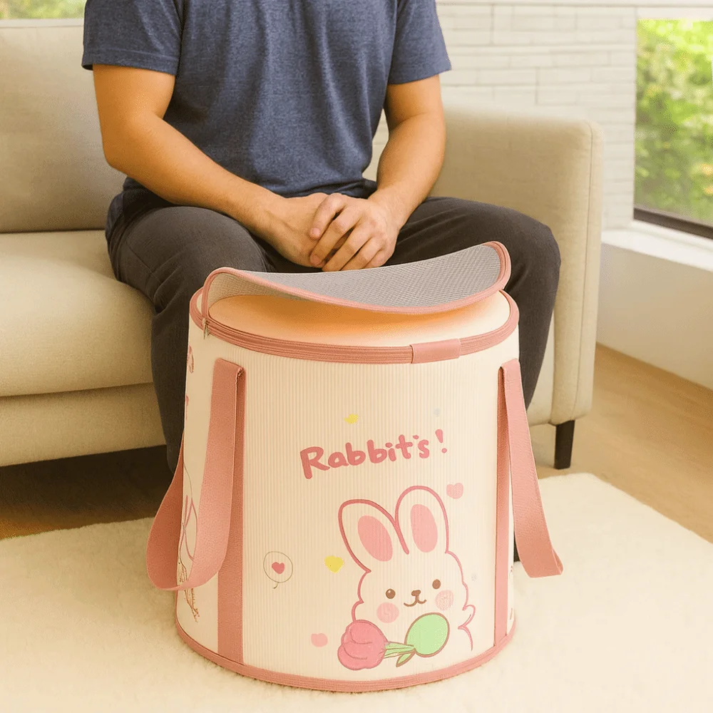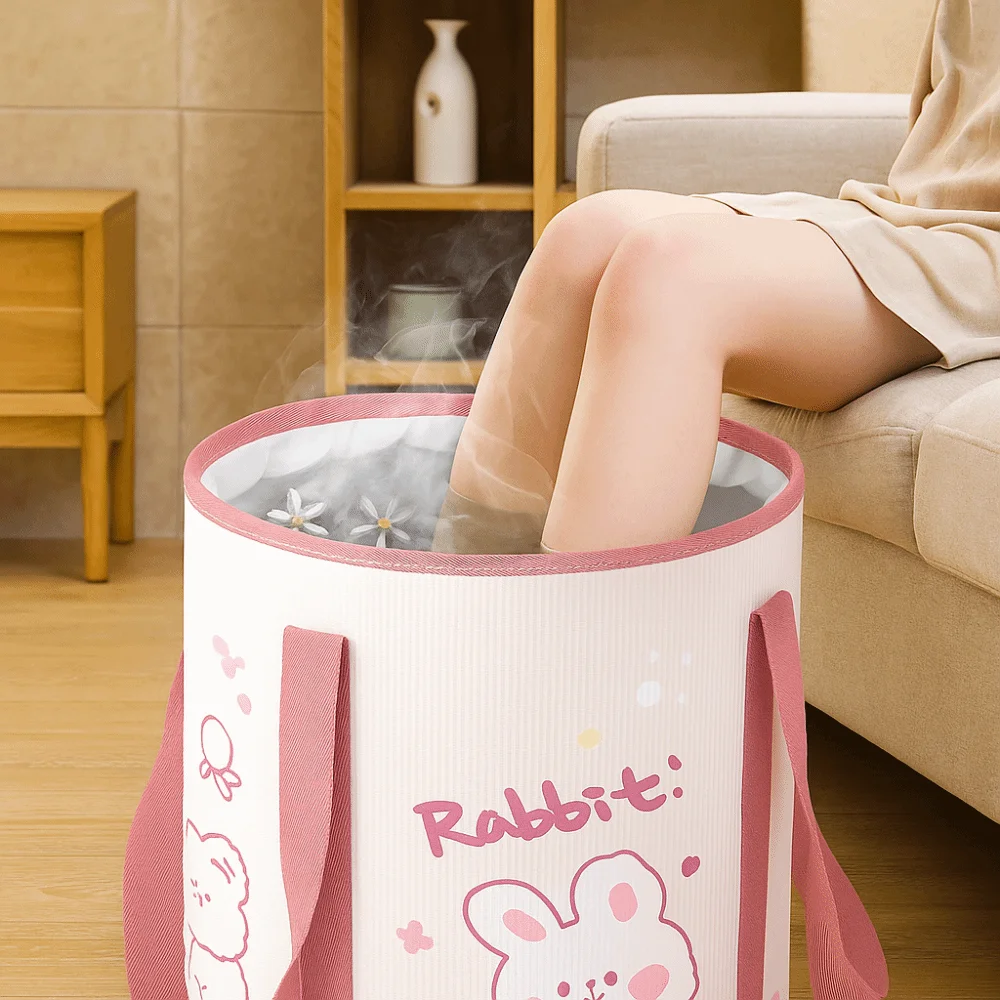 Fußbad-Eimer mit Kaninchenmuster, Isolierung, auslaufsicher, zusammenklappbares Fußbad, hitzebeständig, verdickte faltbare Wanne