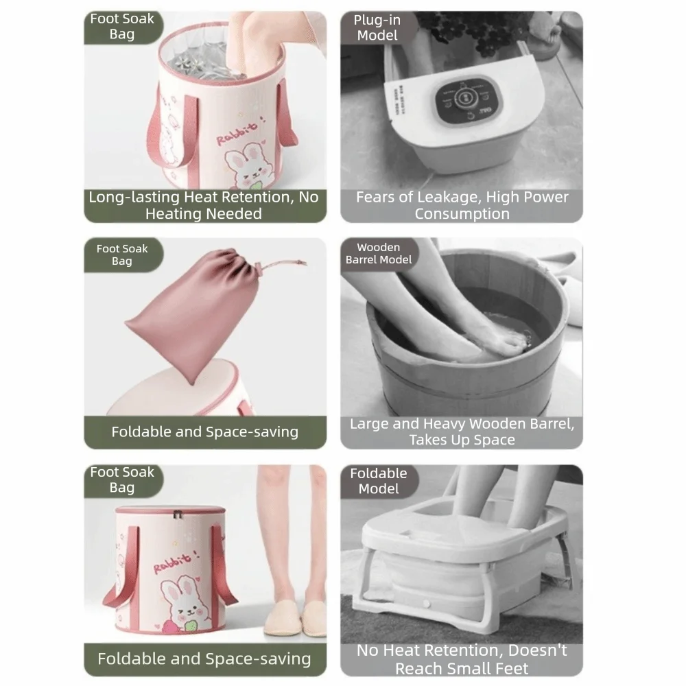 Fußbademmer mit Kaninchenmuster, verdickte Isolierung, Eimer zum Einweichen des Fußes, auslaufsicher, hitzebeständig, zusammenklappbares Fußbad