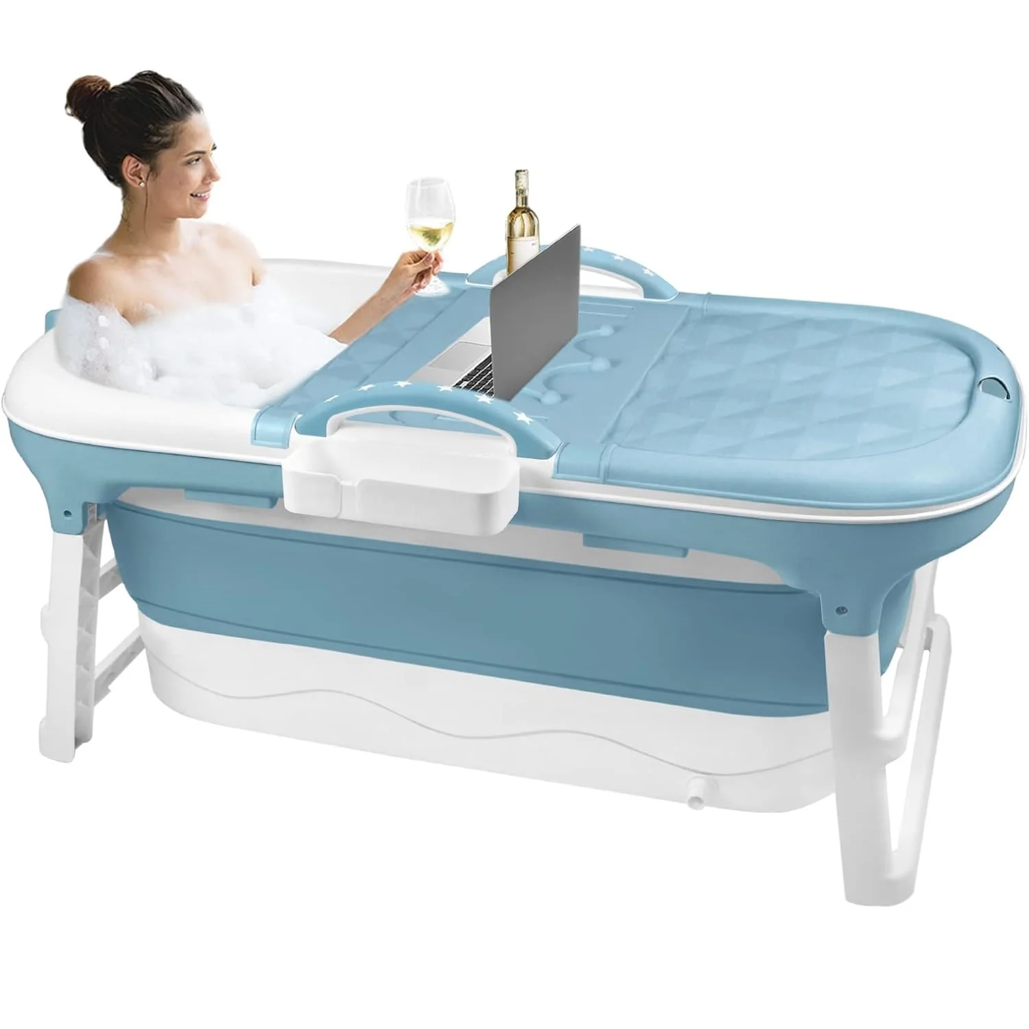 Faltbare Badewanne für Erwachsene, ideal für kleine Badezimmer, praktisch und tragbar, 118x60x53 cm, blau/grau/rosa