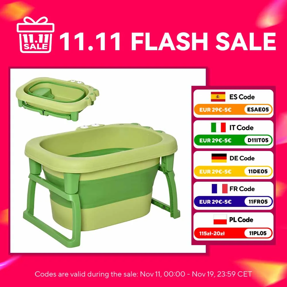 Homcom Klappbare Babybadewanne für Neugeborene bis zu 6 Jahren, tragbare Kinderbadewanne mit rutschfesten Füßen, 105 l, Grün