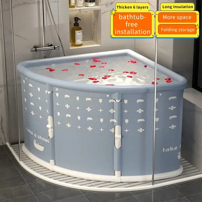 Tragbare, einseitig faltbare Badewanne – dreieckiger Badeeimer für Erwachsene und Kinder, ohne Installation, faltbares Ein-Klick-Design