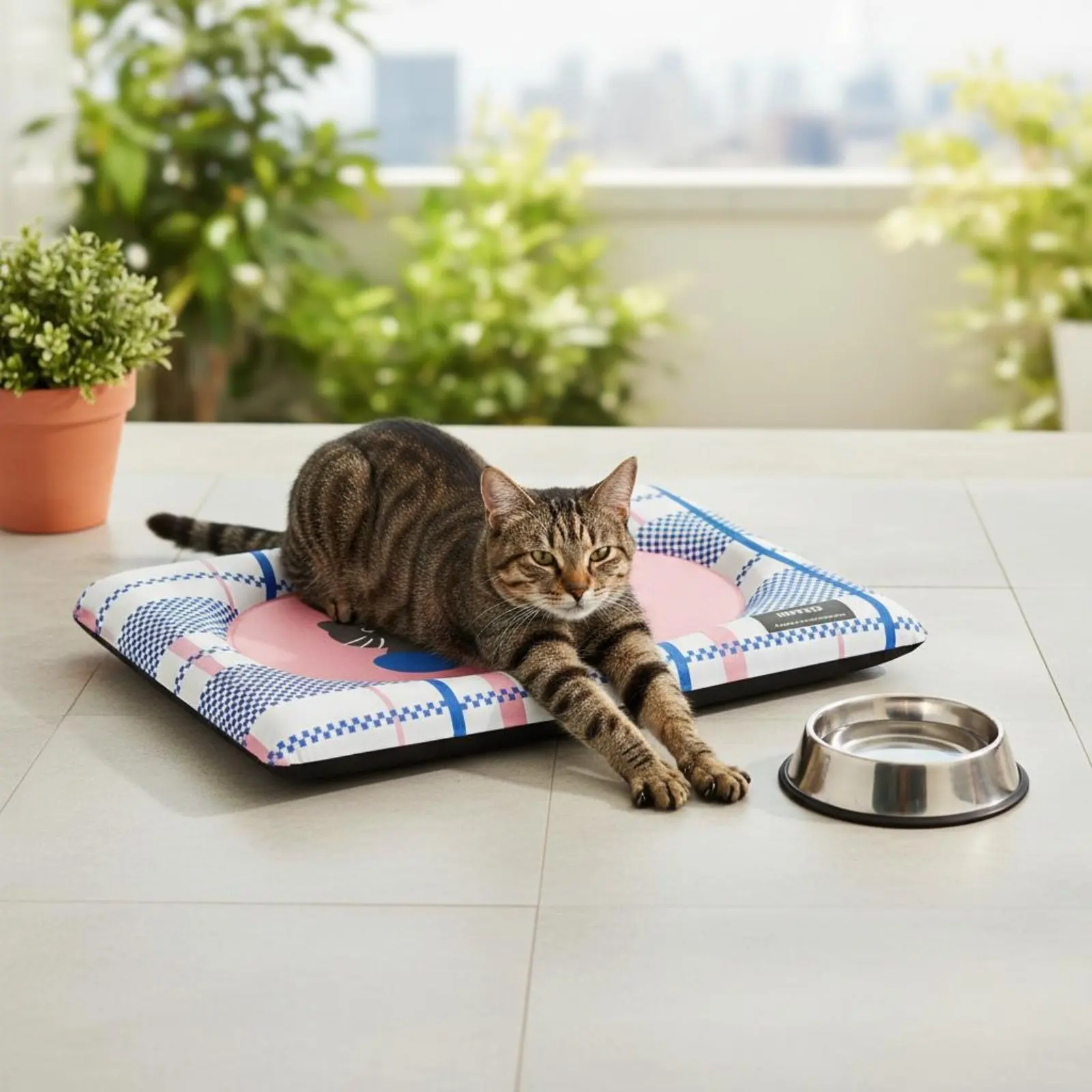 Kühlmatte für Haustiere aus Atmungsaktivem Material, Sommer-Schlafmatte für Tiere, Katzen-Kühlunterlage, Haarabweisende Eisseide Schlafmatte für Haustiere