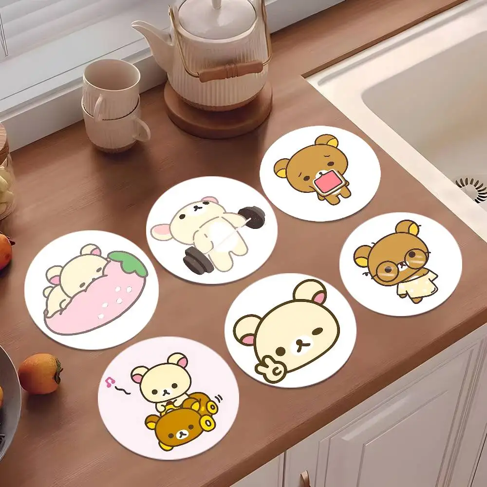 Niedliche R-Rilakkuma-S Untersetzer aus Holz, rund, mit niedlichem Design, geeignet für Getränke, Tee, Kaffee, als Geschenk für zu Hause, für Feiertage