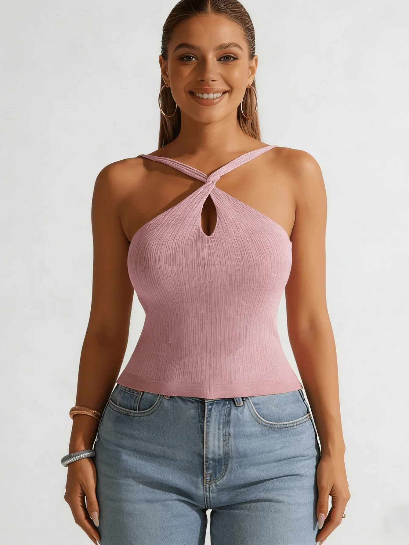 Damen Beige Häkelweste Top V-Ausschnitt Ärmellos Ausgehöhltes Strick-Tanktop Sommer Strand Urlaub Boho-Stil Locker Sitzende Freizeitbluse