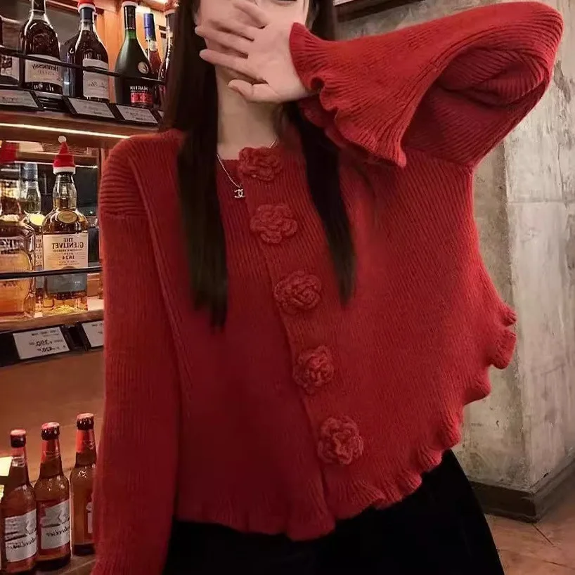 Damen Rosa Geripptes Strick-Top mit Quadratischem Ausschnitt, Langarm, Slim Fit, Crop-Pullover, Lässiges Süßes Basic-T-Shirt für Frühling, Herbst und Alltag