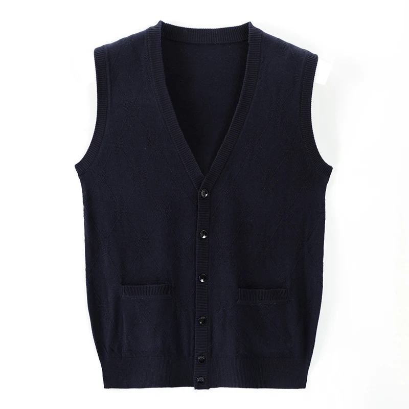 Herbst Winter Herren Gestrickte Weste Pullover Ärmellose V-ausschnitt Pullover Weste Taste Vorne Strickjacke Weste