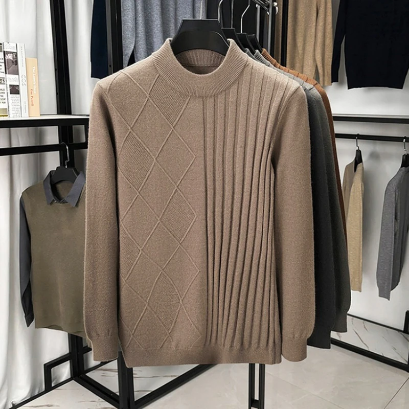 Herren-Strickpullover aus Wollimitat für Herbst und Winter, dicker, halbhoher Ausschnitt, gedrehte Blumen