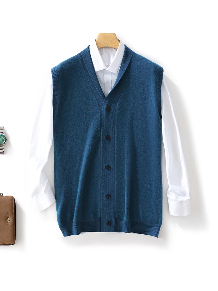 100% Merinowolle Strickjacke V-Ausschnitt Herren Einfarbig Weiche Weste Einreihig Gestrickt Hautfreundlich Warm Herbst Winter Freizeitkleidung