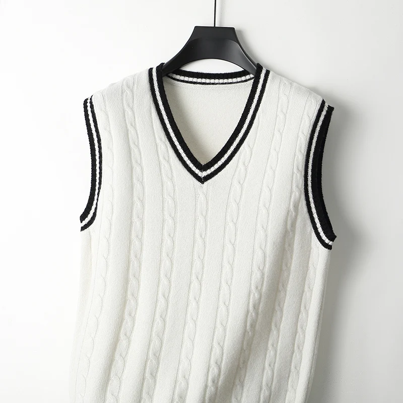 Weiß Gestreifte Gestrickte Pullover Für Männer Weste V-ausschnitt Mann Kleidung Ärmellose Weste Dicke Winter Alte Baumwolle Großhandel Verkauf S