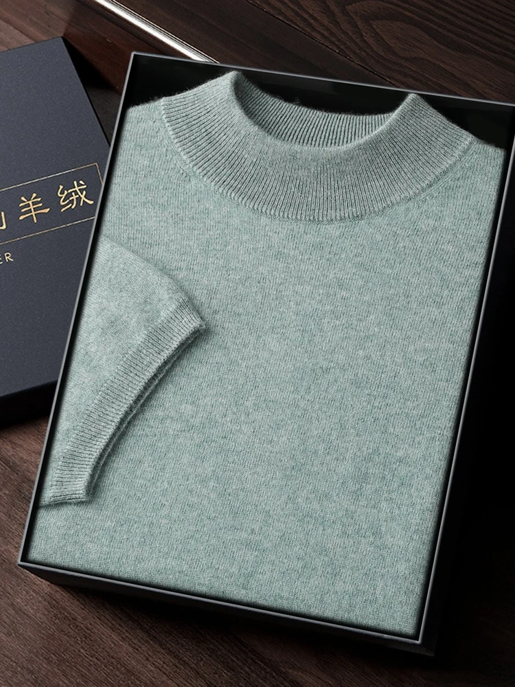 Herren Kaschmir Halbrollkragen Kurzarm-Pullover Locker Sitzend Gestrickt Einfarbig Lässiger Koreanischer Stil Winter Warm Modische Herrenweste