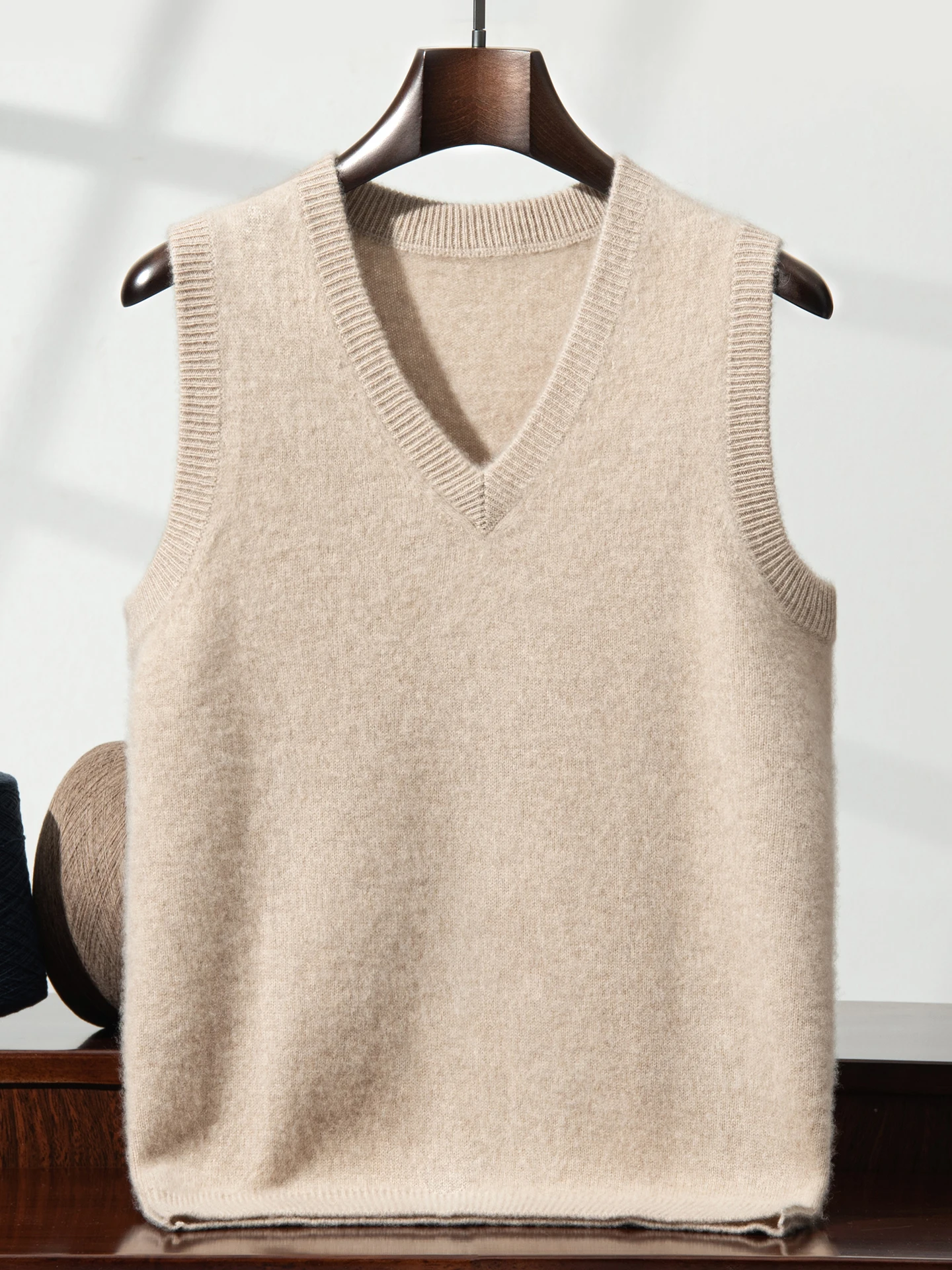 Lässige Herren-Weste aus 100 % Kaschmir, Luftschicht, V-Ausschnitt, einfarbig, ärmellos, warm gestrickt, High-End-Business-Weste