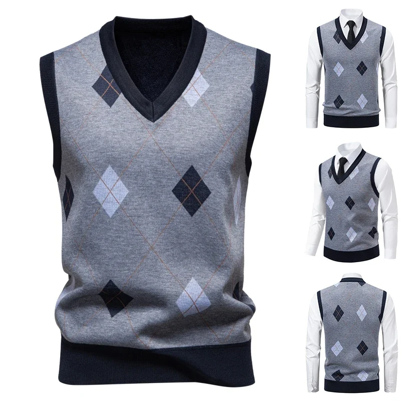Strickjacke Pullover Westen Männer Herbst Winter Fleece Gestrickte Weste Argyle Plaid Smart Kausalen Mode Stricken Ärmellose Pullover Weste