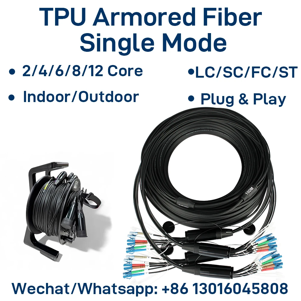 2/4/6/8/12-adriges LC SC FC ST Singlemode Industrielles TPU-armiertes Glasfaserkabel für Innen- und Außenbereiche mit Splittern und Schutzkappen