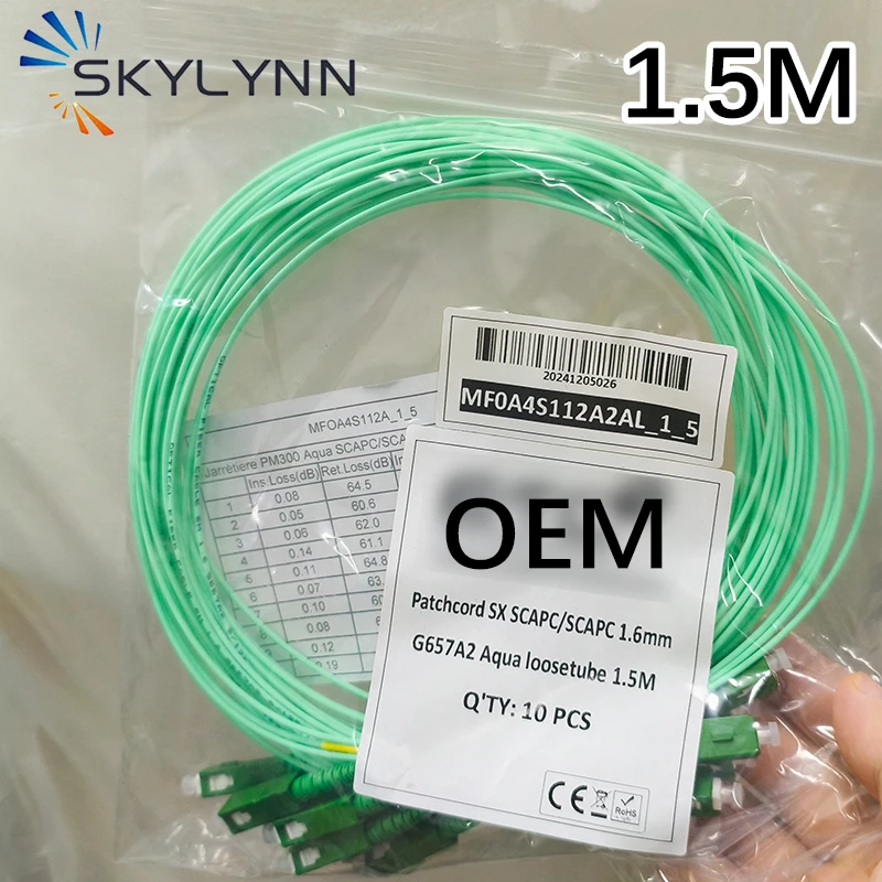 50/100PCS 1,5 M SC/APC-SC/APC Single Mode G657A2 Simplex 1,6mm Fiber Optic Patchkabel Aqua LSZH Fabrik OEM Marke