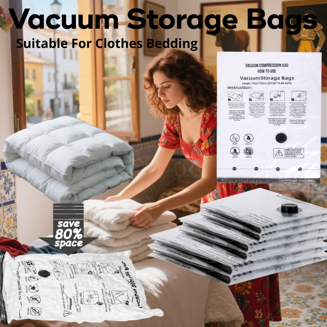 TAILI 1 Stück Vakuumbeutel, keine Pumpe erforderlich, große Kunststoff-Aufbewahrungsbeutel zur Aufbewahrung von Kleidung, Decke, Kompressionsbeutel, Reisezubehör
