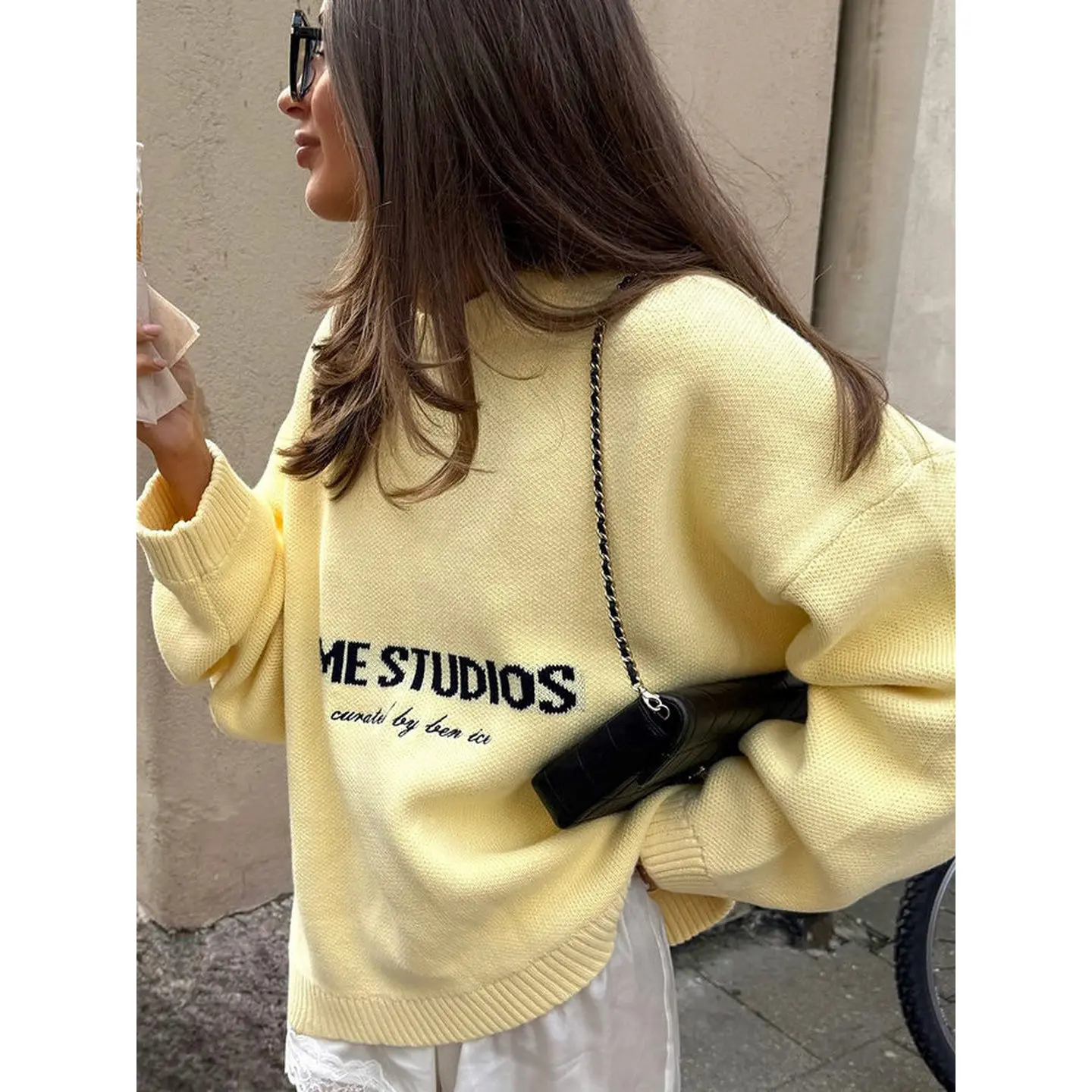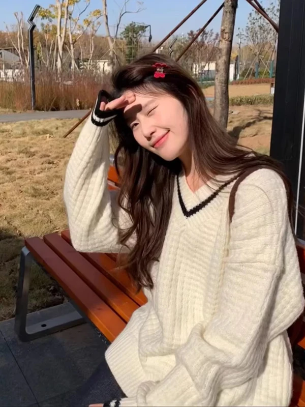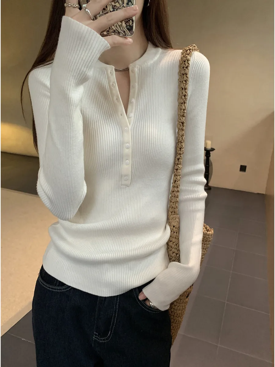 Französischer modischer Pullover-Oberteil für Damen im Herbst und Winter, hochwertiger Schwerindustrie-Pullover mit heißem Bohrspleiß und halbhohem Halsausschnitt