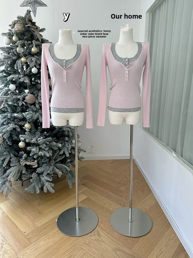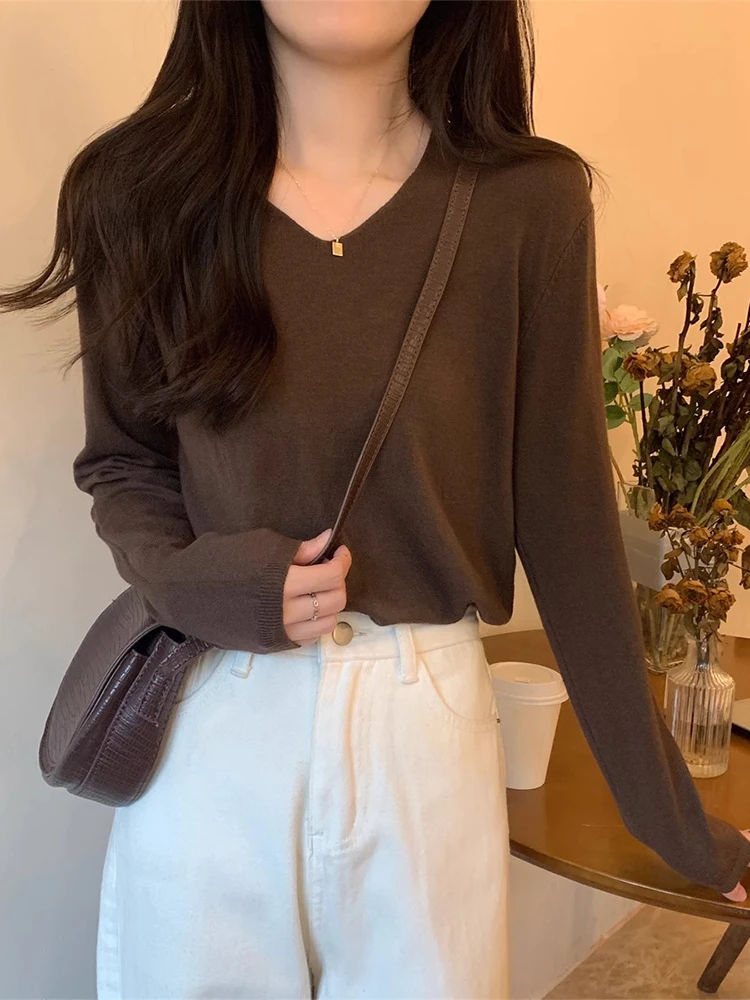 Koreanische V-Ausschnitt Strick-Unterwäsche für Damen, Frühling-Herbst Neuheit, Weiche Langarm-Layering-Oberteil, Vielseitige Basis für Herbst und Winter