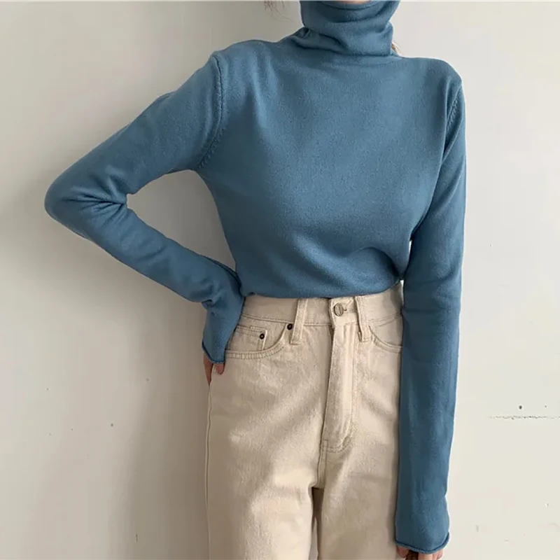 2025 frauen Pullover Gestrickte Pullover Herbst Winter Rollkragen Pullover Lange Hülse Dünne Grundlegende Feste Weibliche Pullover Tops