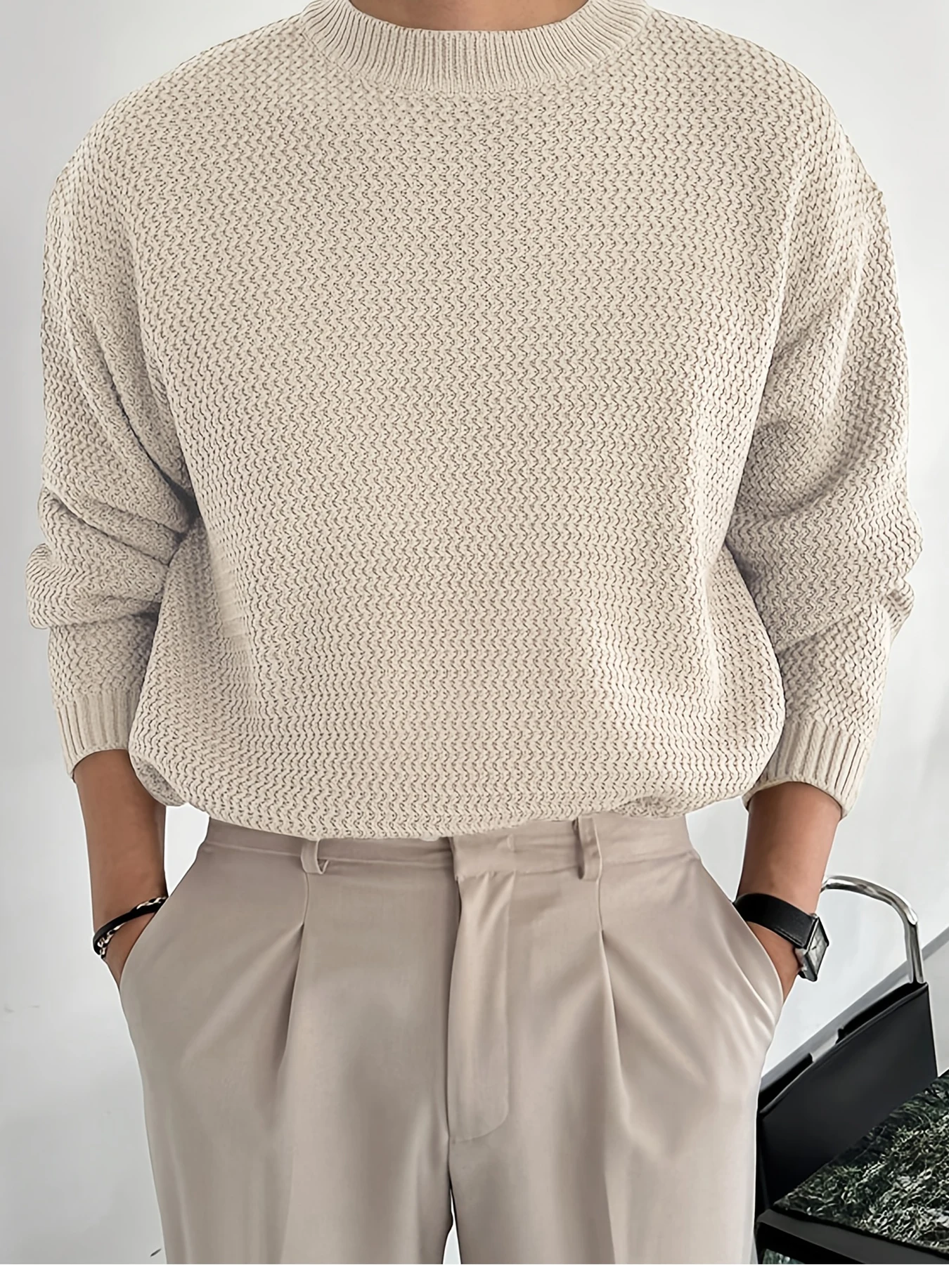 Neuer Herren-Strickpullover, einfarbig, lockerer, lässiger O-Ausschnitt-Pullover für Frühling und Herbst, langärmelige Sportbekleidung, Herrenpullover.