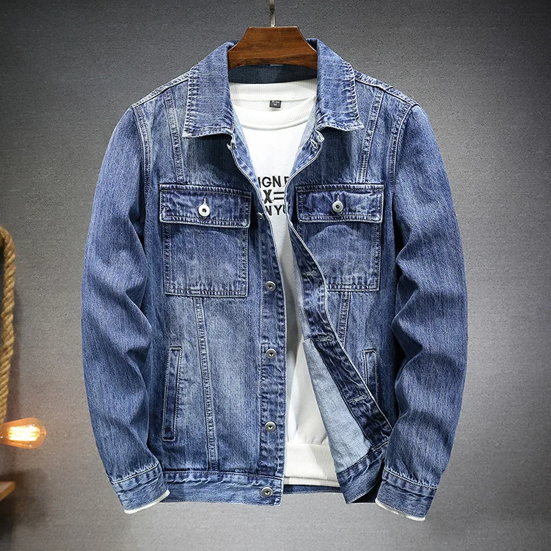 Neue Denim Jacke Männer Vintage Jean Mäntel Streetwear Fashion Jean Jacke Männer Drehen Unten Kragen Denim Oberbekleidung Baumwolle Bomber Jacke