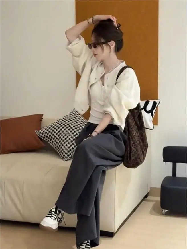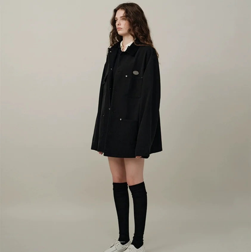 Lockerer, lässiger, kontrastfarbener Retro-Kragen, Arbeitskleidung, SLE Jaet-Oberbekleidung, Frühling 2025, ThBarnet Eight Milk Commuting Wind