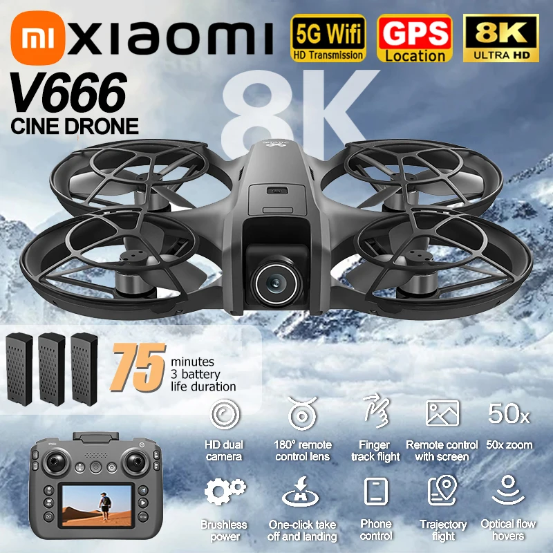 Xiaomi V666 Drone 8K Aerial HD Dual Camera Intelligent Obstacle Avoidance Screen Remote Control Brushless Power GPS Return Drone