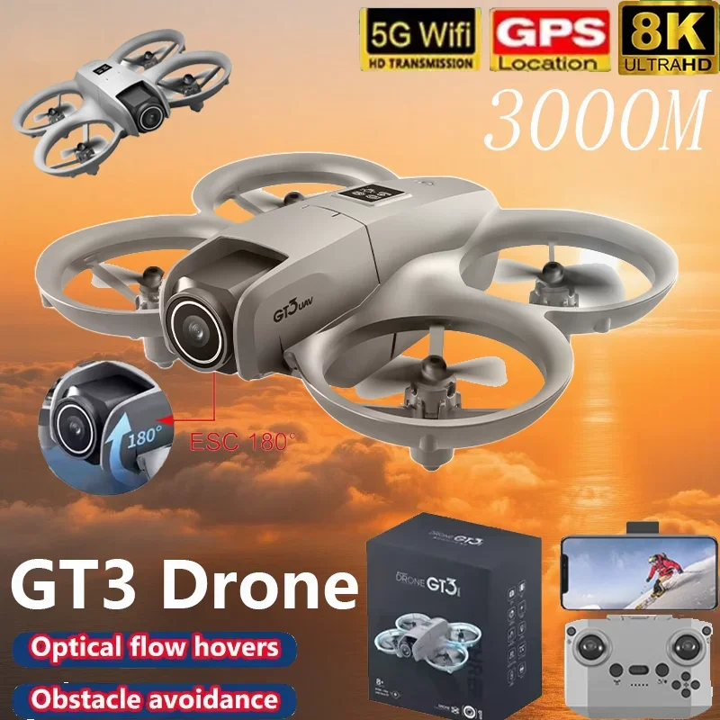 NEUE GT3 RC Mini-Drohne 8K HD Elektrisch Gesteuert 180° ° Dual-Kamera Hindernisvermeidung Optische Flusslokalisierung Quadcopter-Spielzeug